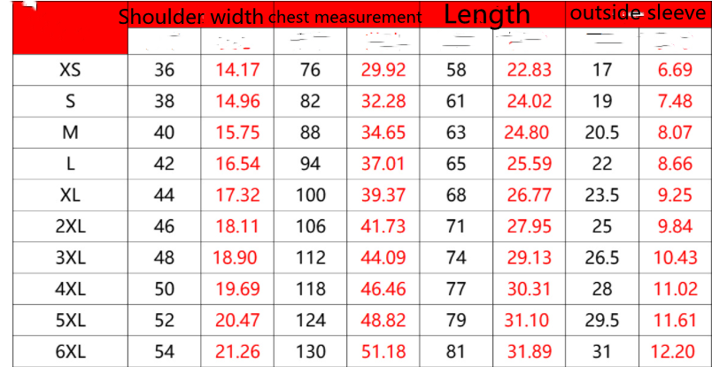 Size: XS,S,M,L,XL,2XL,3XL,4XL,5XL,6XL,K100,K110,K120,K130,K140,K150,K160