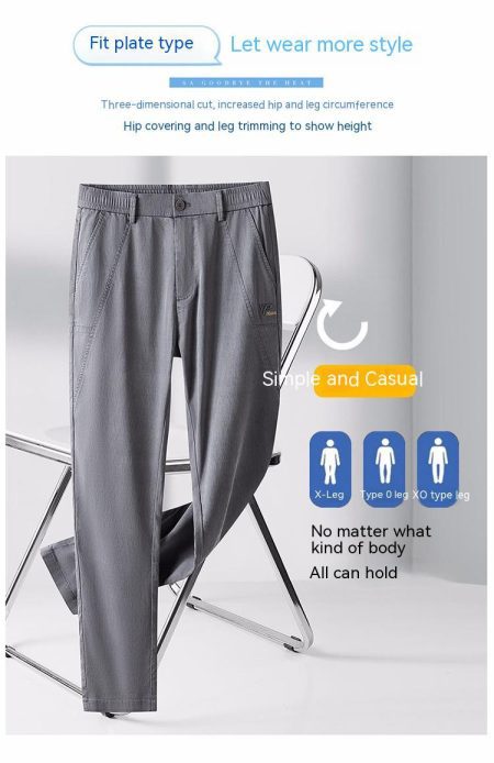• Men's Tencel Straight Trousers Slim Fit Skinny Pants