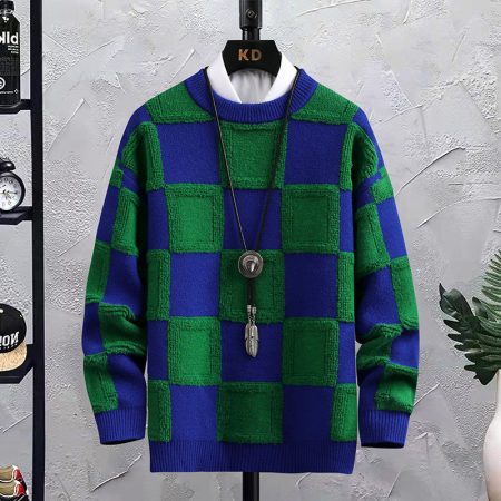 • Men's Trendy Plaid Round Neck Sweater Loose